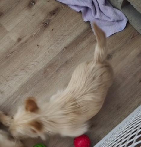 This brindle girl and wheaten boy are available in California